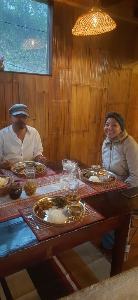 At lunch, we tucked into rice, dal, and omelette — nothing posh, but trust me, it tasted like a Oberoi Grand feast after that trek. It wasn’t just the food — it was the effort, the altitude, the shared laughter, and possibly the hunger that made it so blooming delicious.